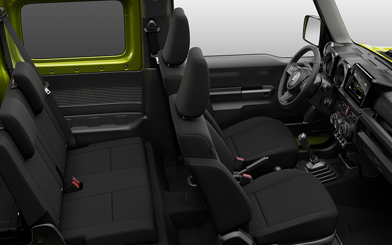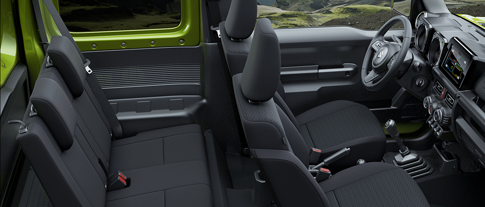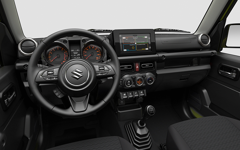 В Jimny Вас ничто не будет отвлекать от вождения. Стильный салон, выполненный в черном цвете, выглядит скромно, но приятно, а приборы управления обеспечивают быстрое и легкое взаимодействие даже в перчатках.